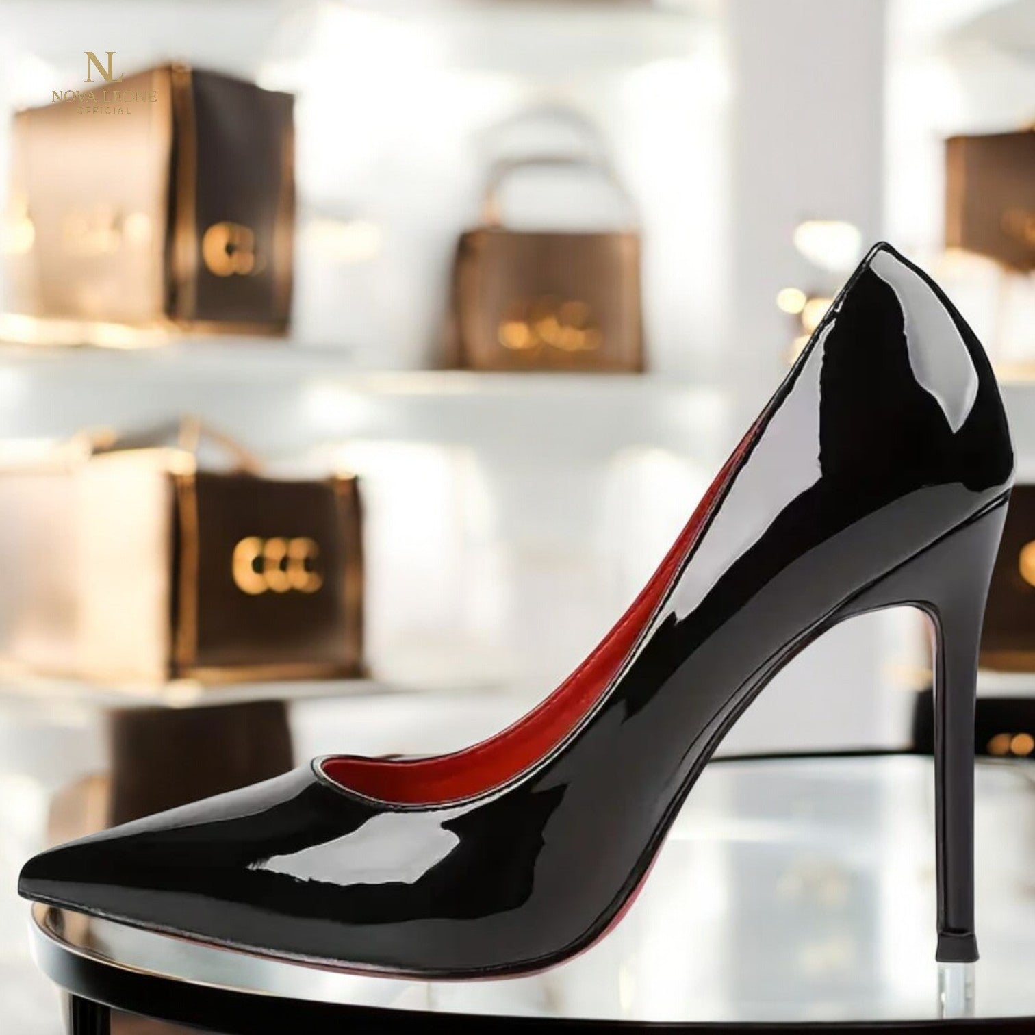 Step into sophistication with our Noir Éclat Stiletto crafted in a sleek patent leather finish and set on a signature red-lacquered sole. A pointed toe and sculpted stiletto elevate every look from cocktail to couture.